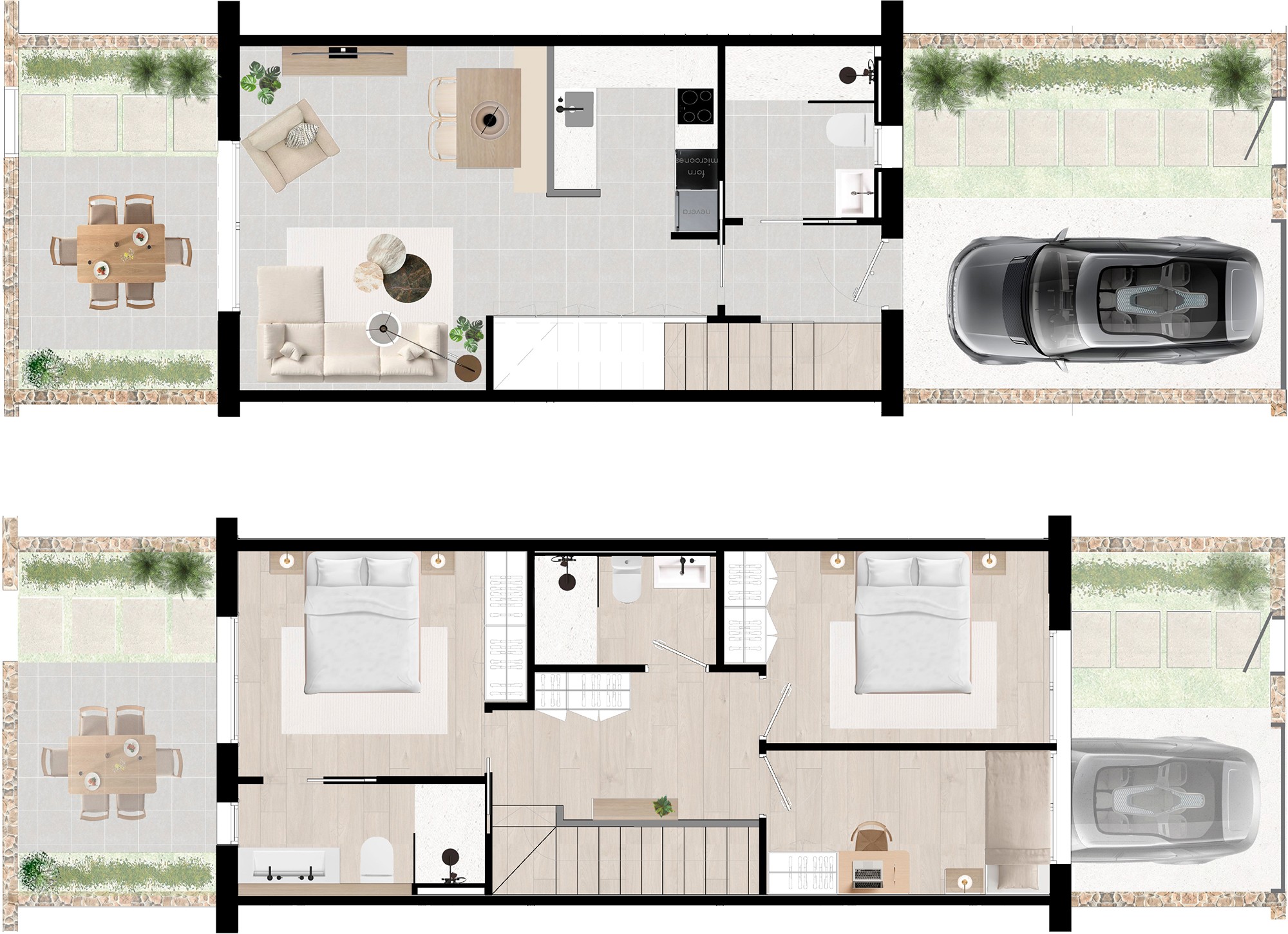 Each 2-floor unit is designed with modern living in mind, featuring: